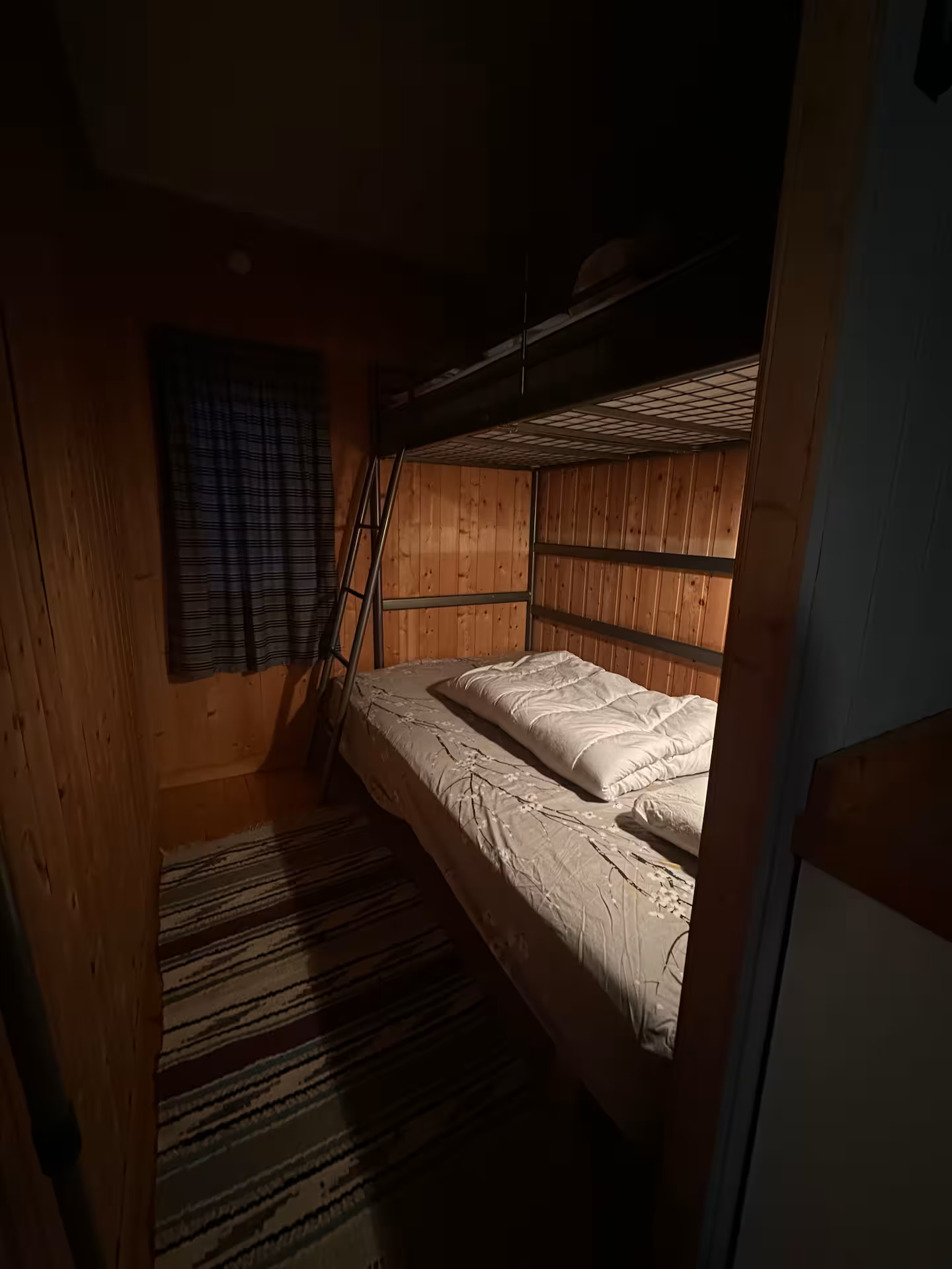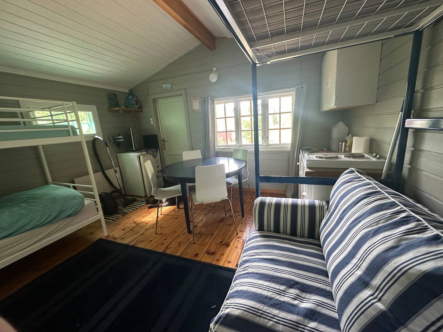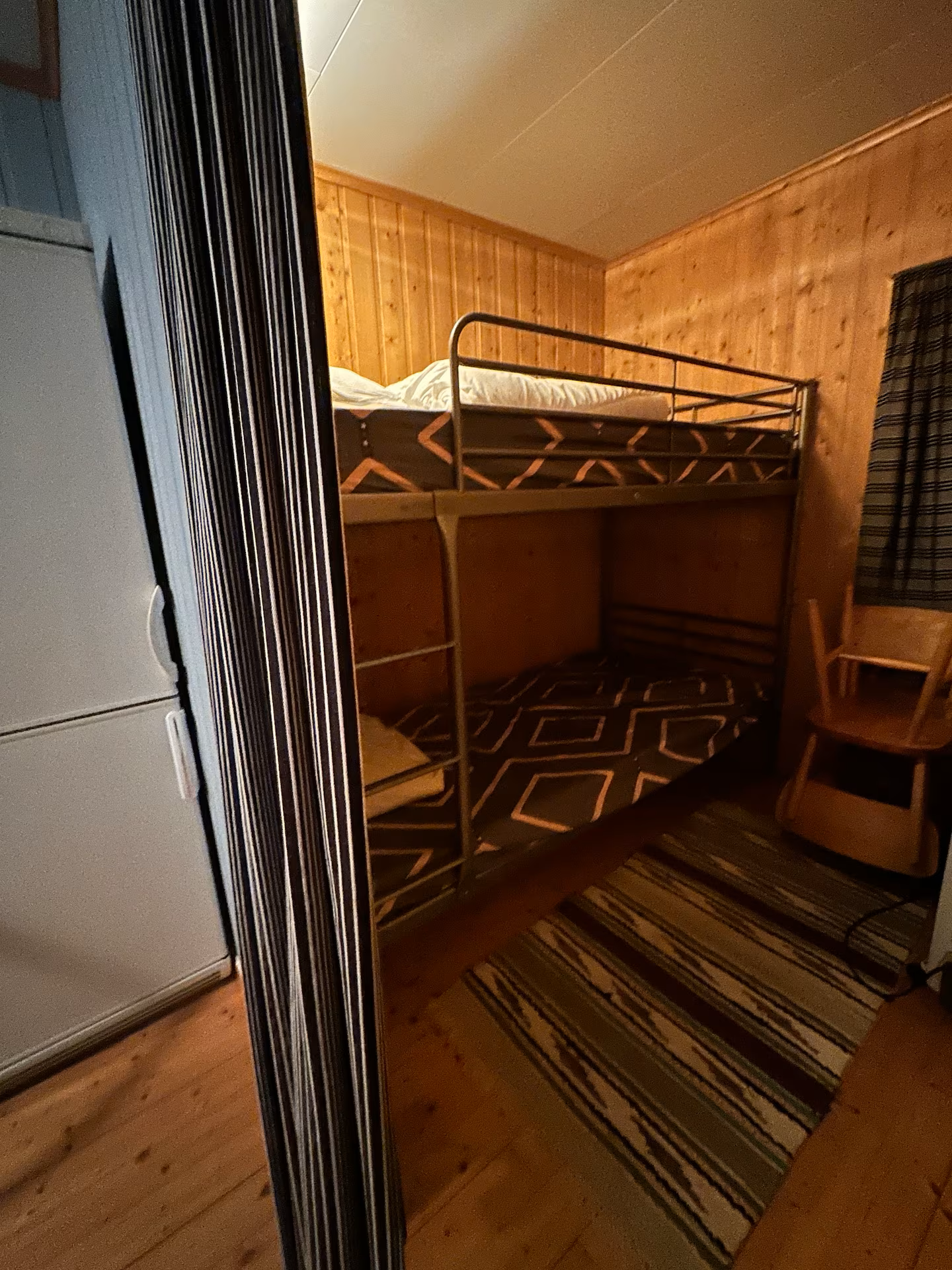 Denne hytten har 1 rom med 1 køyeseng, 1 loftseng og en sovesofa.