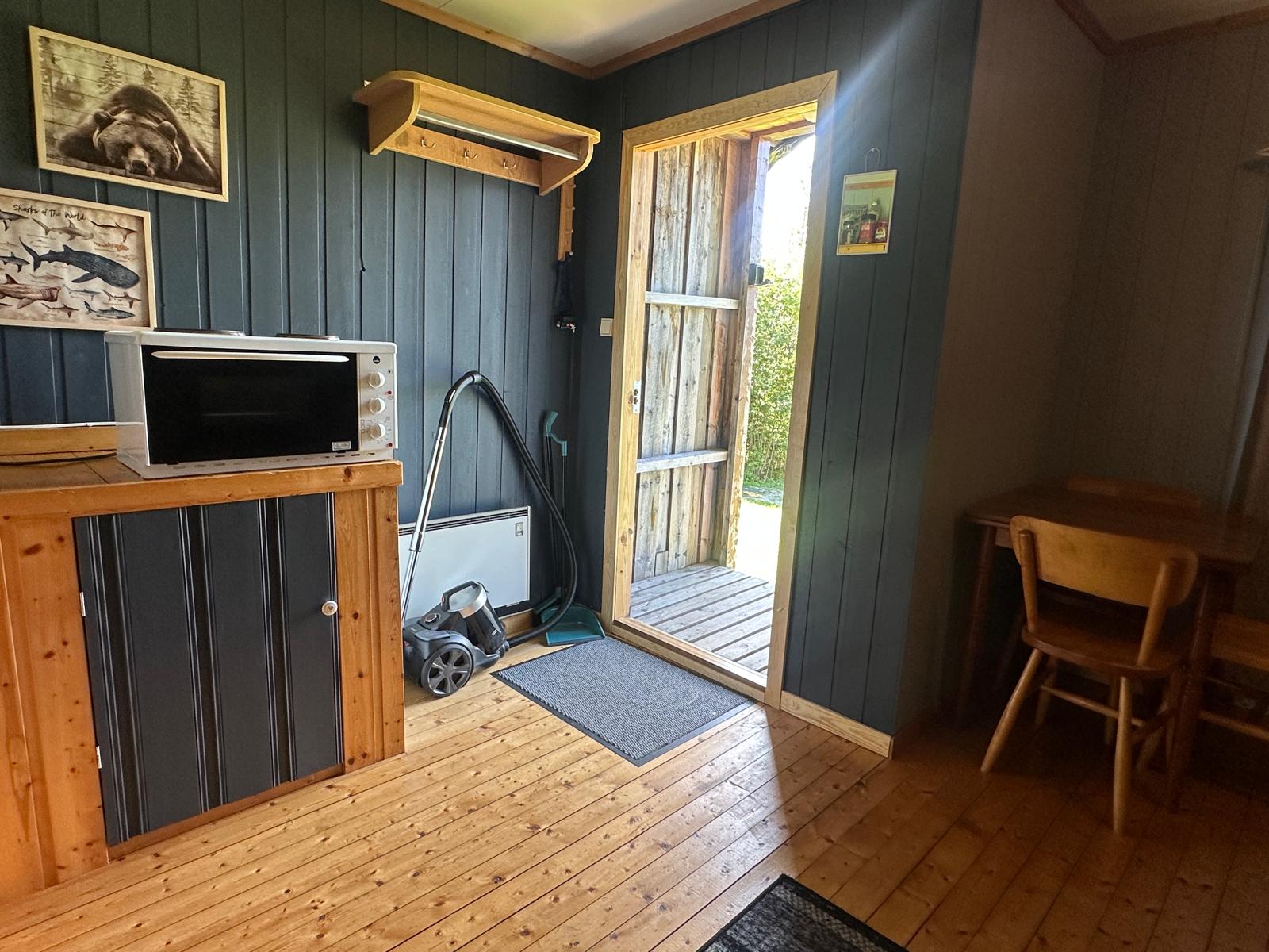 Bilder av de to hyttene vi har til utleie. Vi har 4 hytter til som er under oppussing.